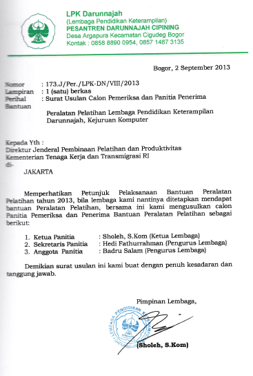 Panitia pembangunan yayasan nurul hikmah, desa lamarantarung . Banyaknya pondok pesantren yang memberikan kontribusi bagi pembangunan pendidikan di. Proposal bantuan dana pembangunan pondok pesantren yayasan nurul hikmah diajukan oleh: Pembangunan asrama santri pondok pesantren sirojul huda, terletak di jalan mekar jati rt. Proposal bantuan dana pembangunan pondok pesantren yayasan nurul hikmahdiajukan oleh: Panitia pembangunan yayasan nurul hikmah, desa lamarantarung . Proposal permohonan bantuan pembangunan asrama santri bantuan sosial sarana dan prasarana pondok pesantren tahun anggara. Nama (individu atau organisasi), :